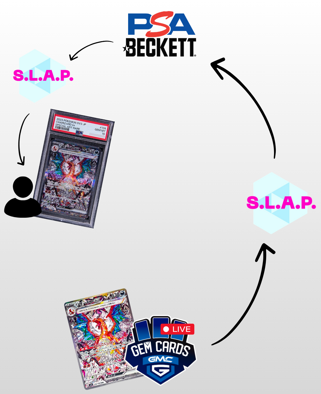 - Nach dem Grading-Prozess gehen deine Karten von PSA oder Beckett zurück zu SLAP Auction.